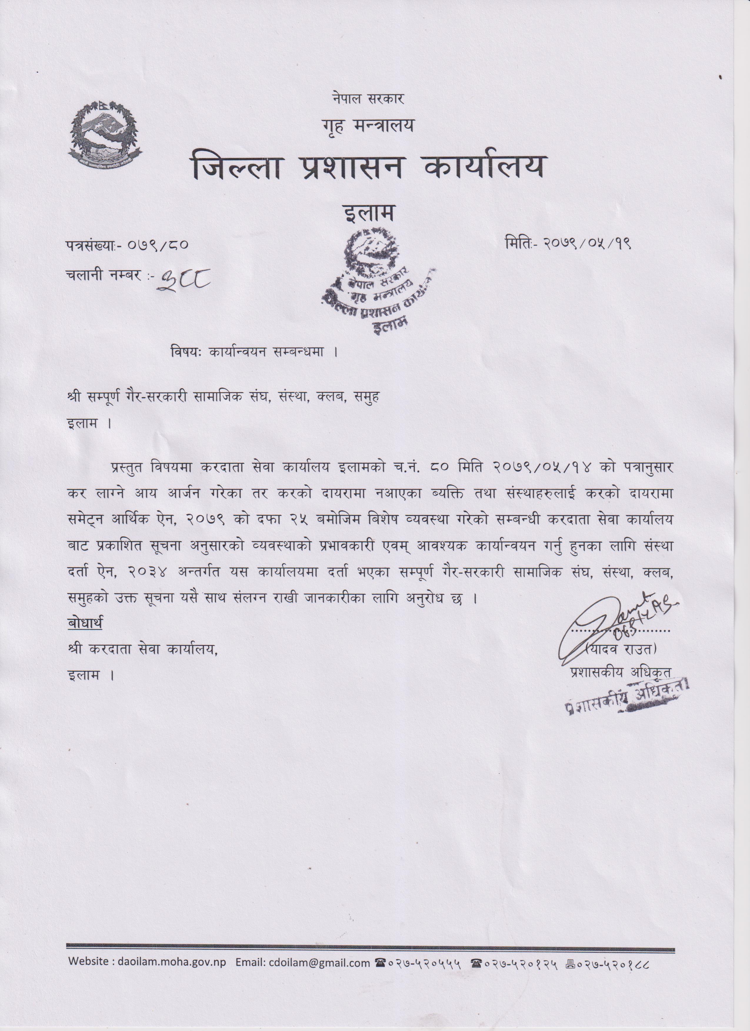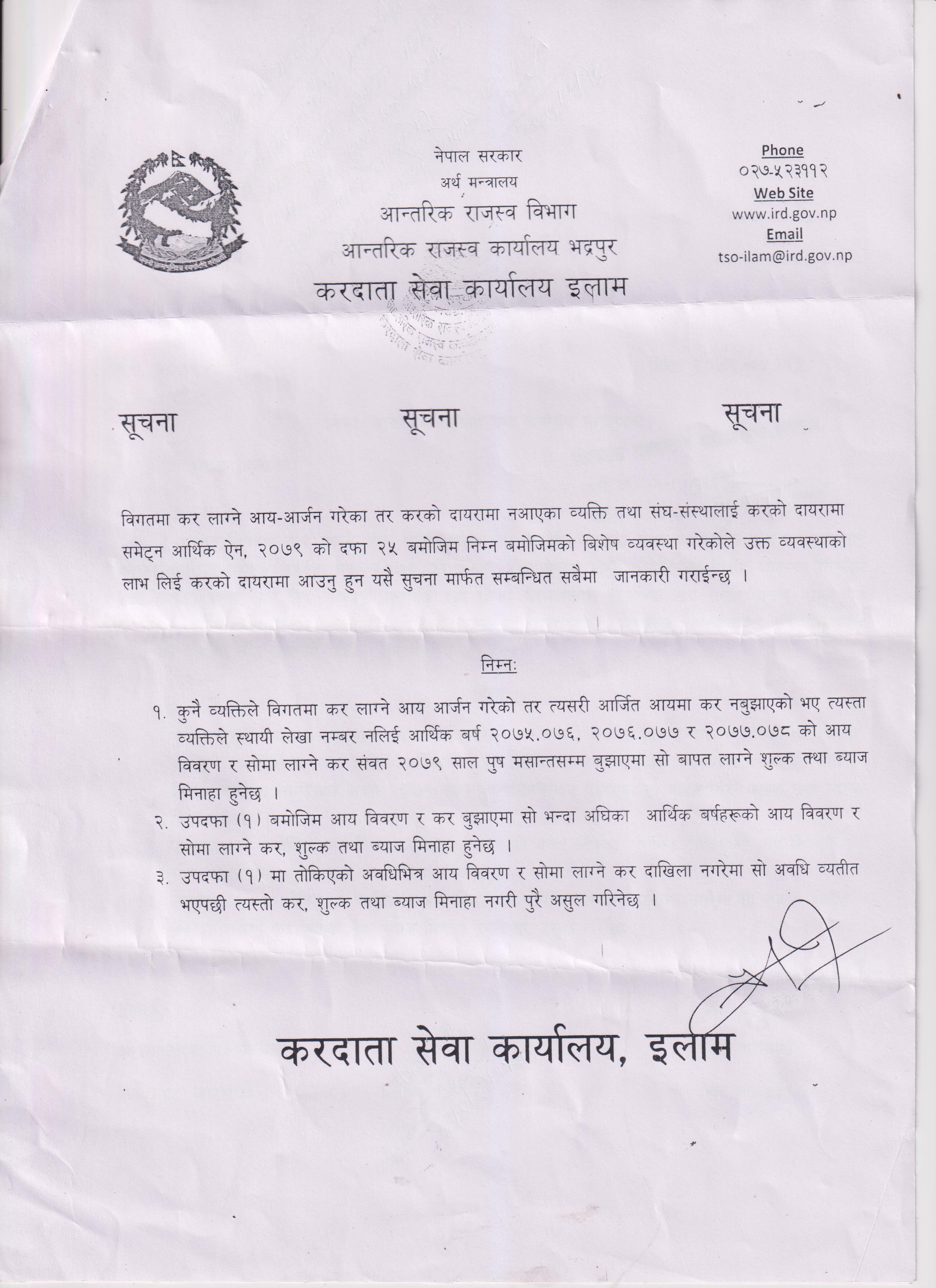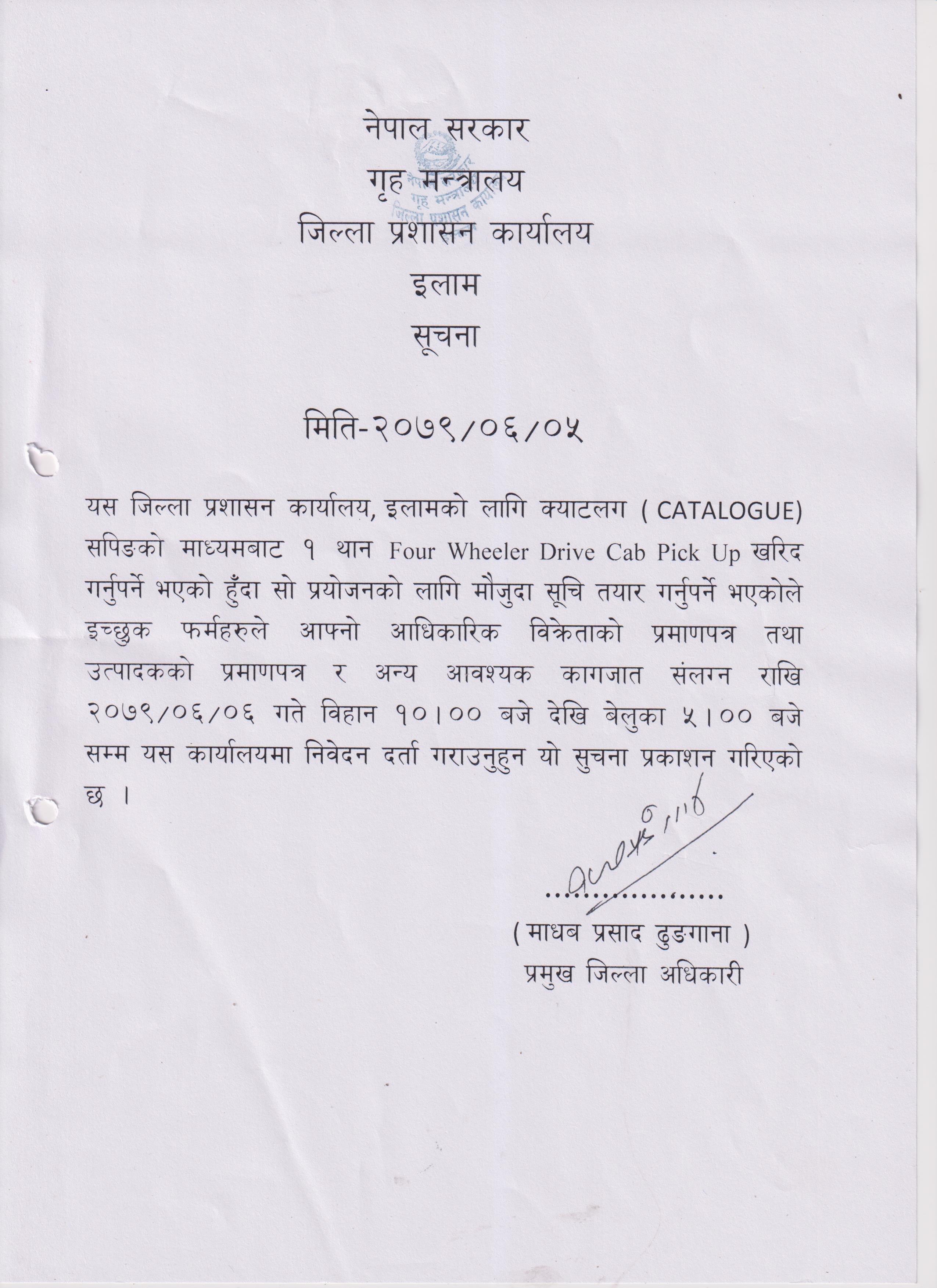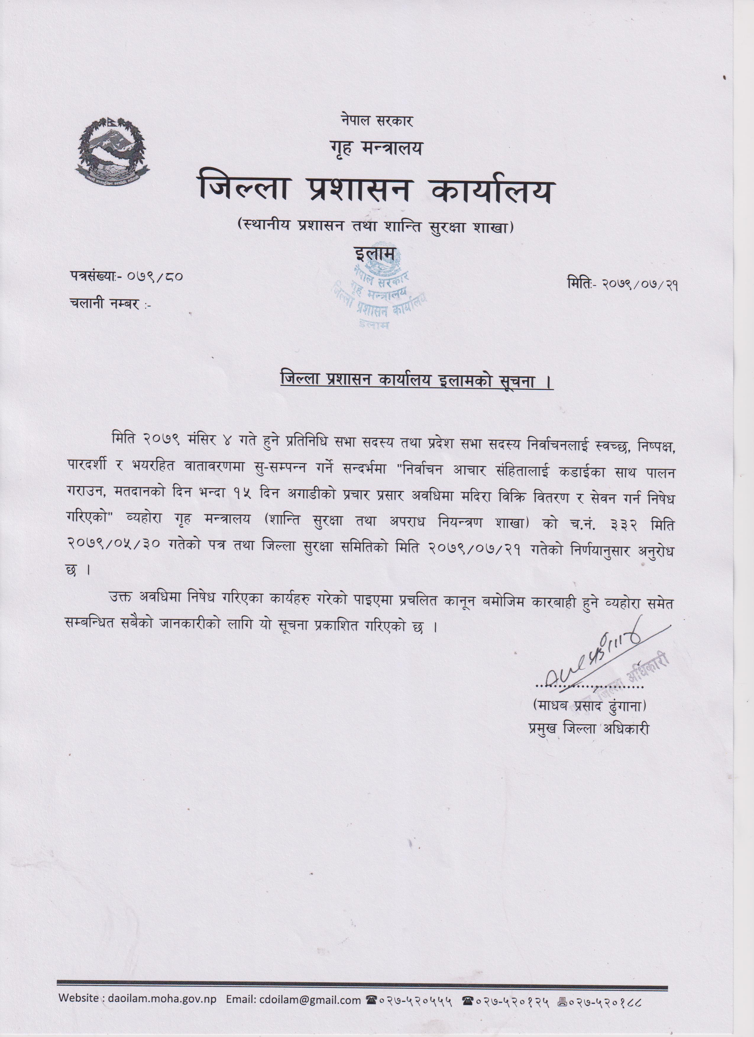 जिल्ला प्रशासन कार्यालय इलामको सूचना
