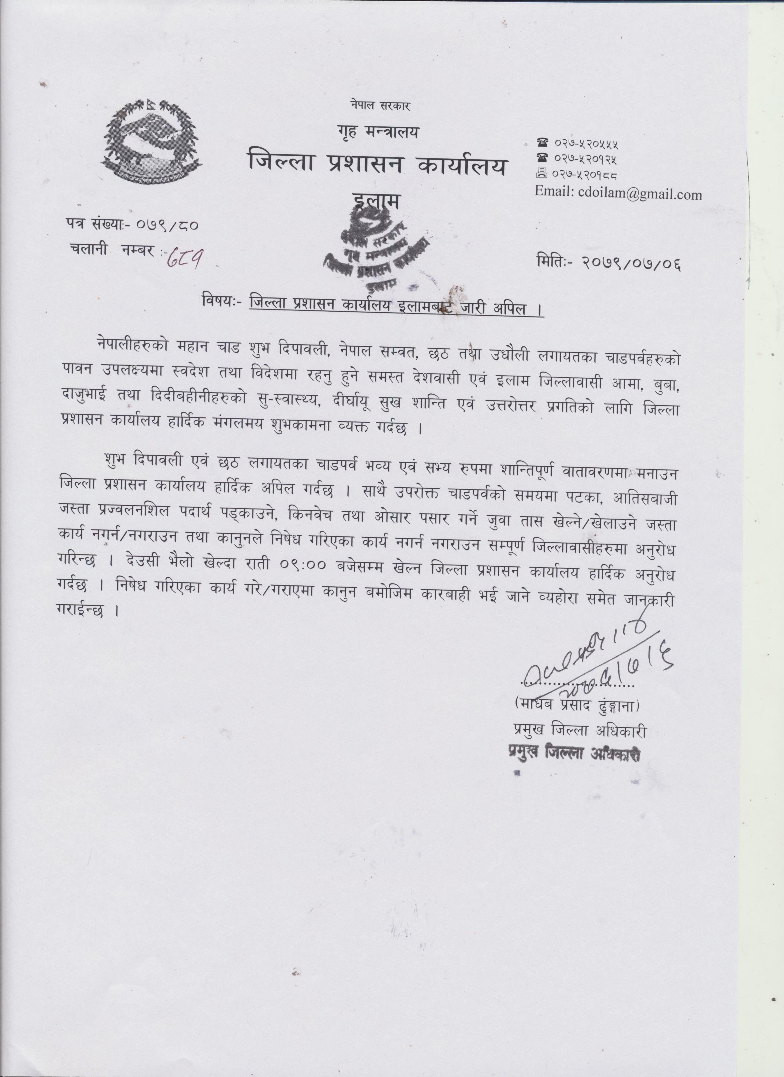 जिल्ला प्रशासन कार्यालय इलामबाट जारी अपिल ।