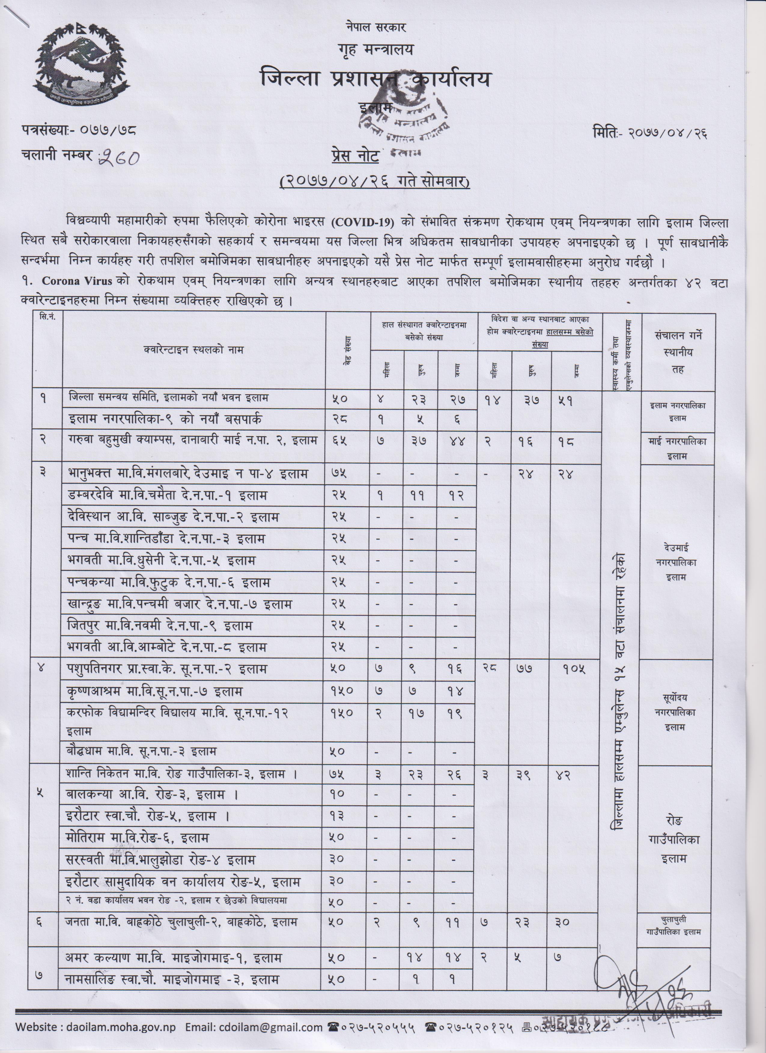 प्रेस नोट २०७७/०४/३२ गते आइतबार ।