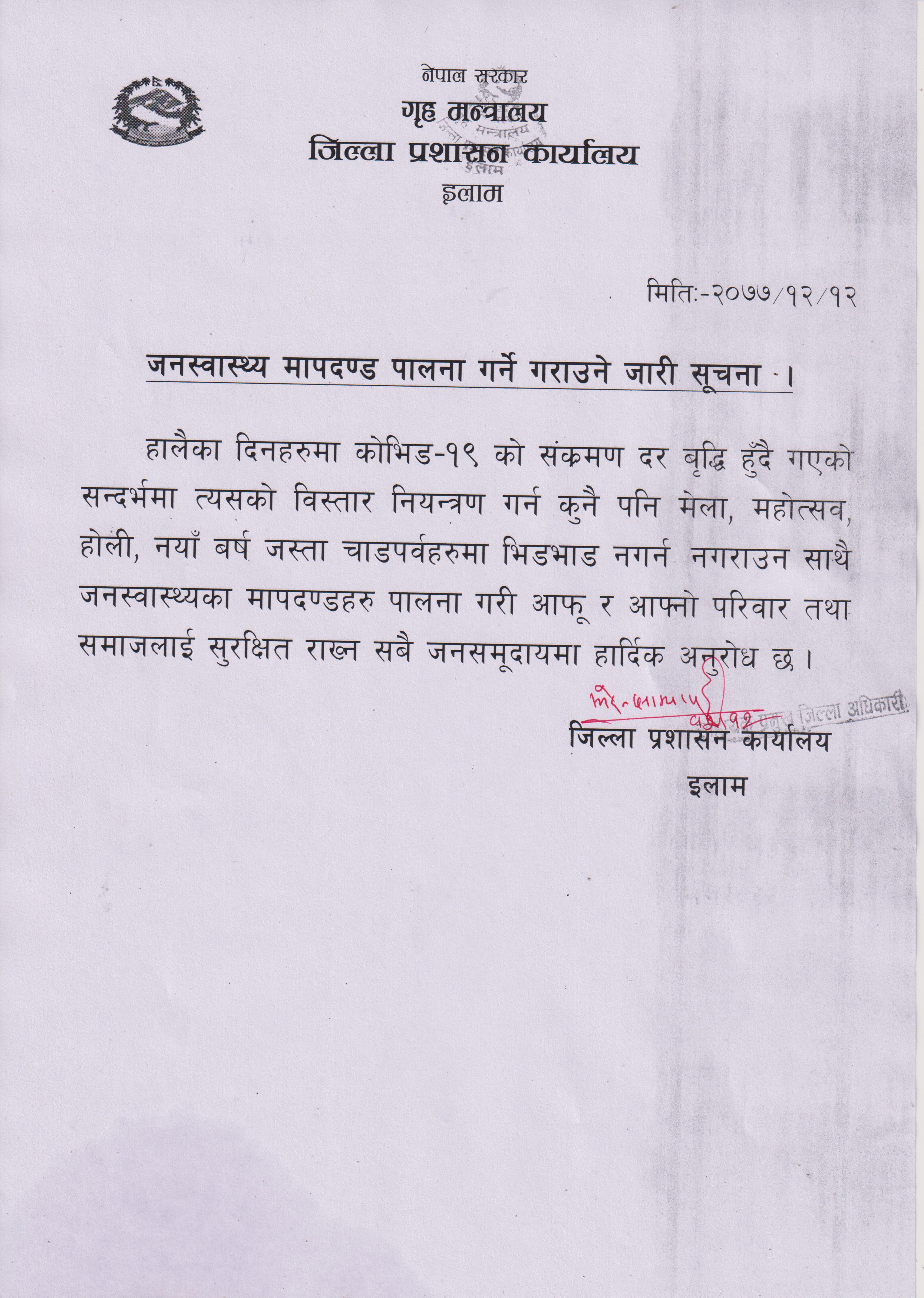 जनस्वास्थ्य मापदण्ड पालना सम्बन्धी जारी सूचना