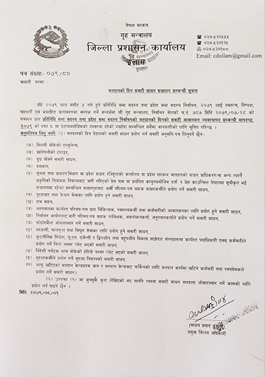 मतदानको दिन सवारी साधन सञ्चालन सम्बन्धी सूचना