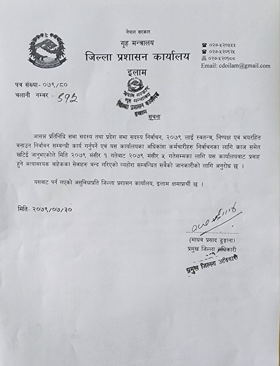 © सर्वाधिकार सुरक्षित जिल्ला प्रशासन कार्यालय, इलाम