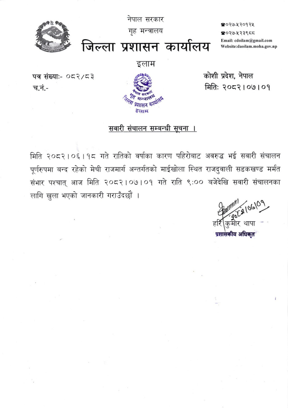© सर्वाधिकार सुरक्षित जिल्ला प्रशासन कार्यालय, इलाम