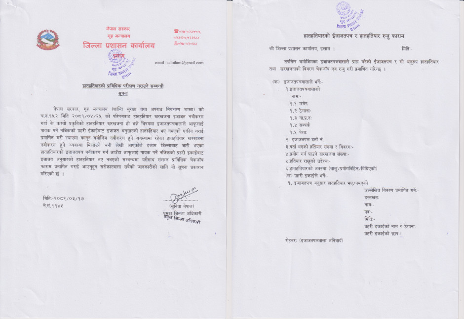 तस्बिर : हातहतियारको प्राविधिक परीक्षण गराउने सम्बन्धी सूचना ।।