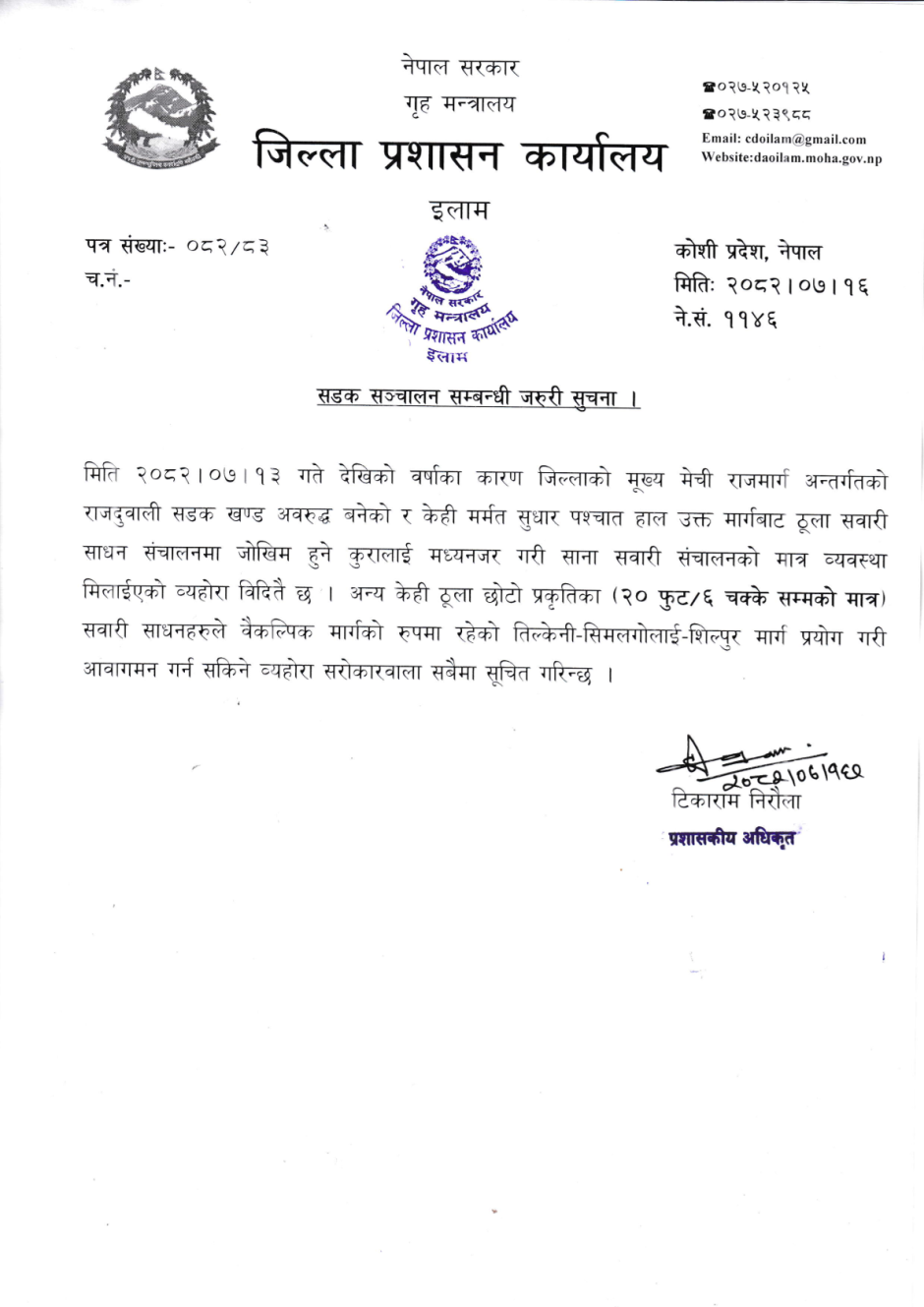 © सर्वाधिकार सुरक्षित जिल्ला प्रशासन कार्यालय, इलाम