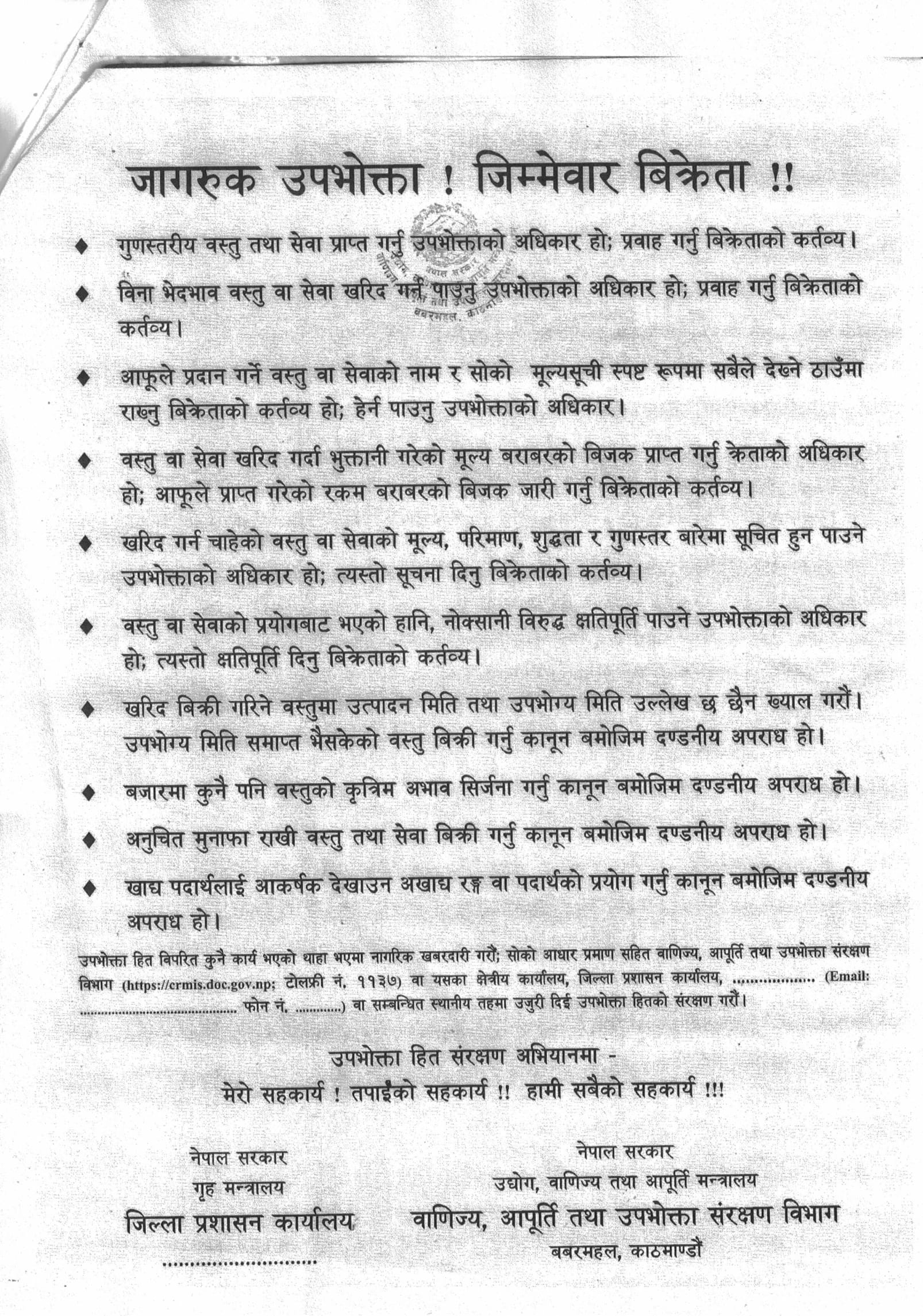 जरूरी सूचना । मूल्य वृद्धि, कालोबजारी सम्बन्धमा