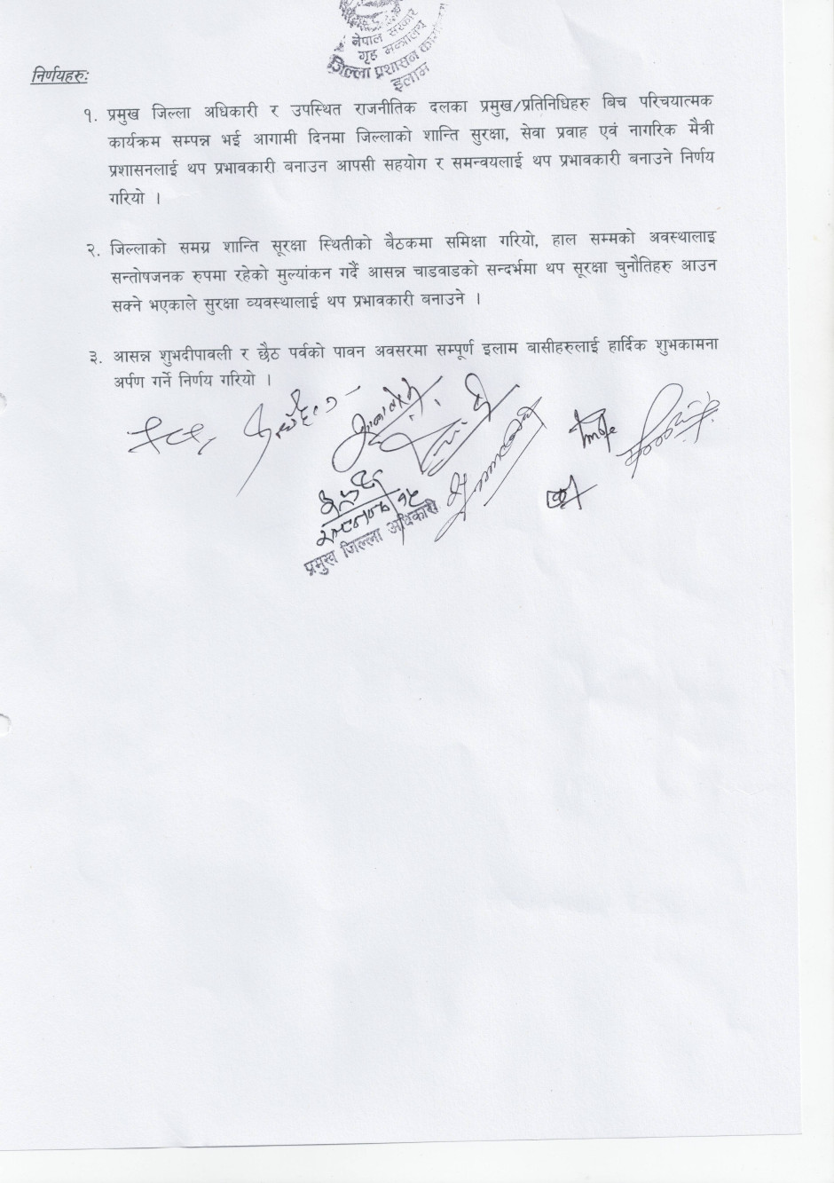 जिल्ला स्थित राजनितिक दलका प्रमुख एवं प्रतिनिधिहरुसँगको सम