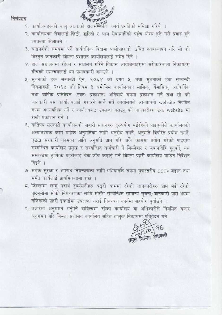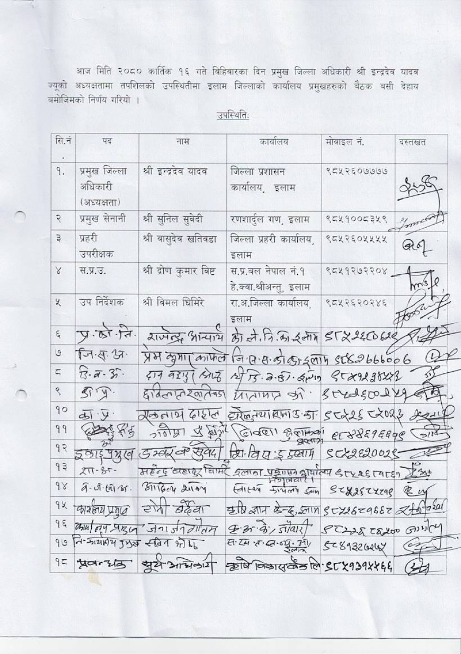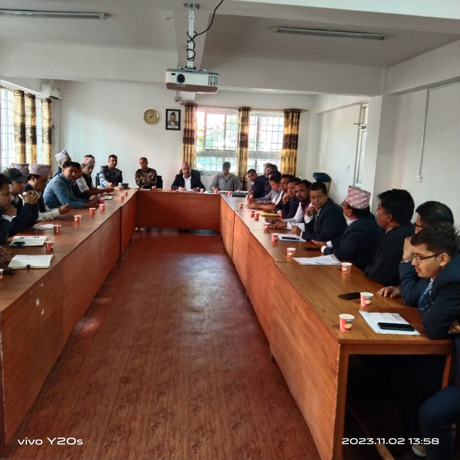 मिति २०८०/०७/१६ गते जिल्ला प्रशासन कार्यालय इलामको सभाहलमा, प्रमुख जिल्ला अधिकारी ज्यूको अध्यक्षतामा सम्पन्न जिल्ला स्थित सबै सरकारी कार्यालयका प्रमुखहरुसँगको बैठक ।