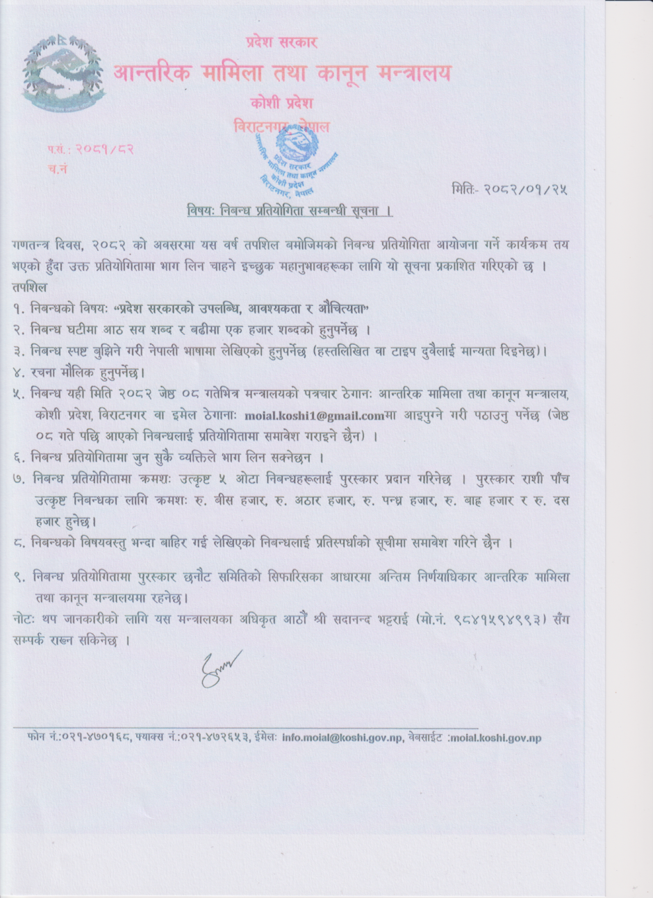 तस्बिर : निबन्ध प्रतियोगिता सम्बन्धी सूचना ।।