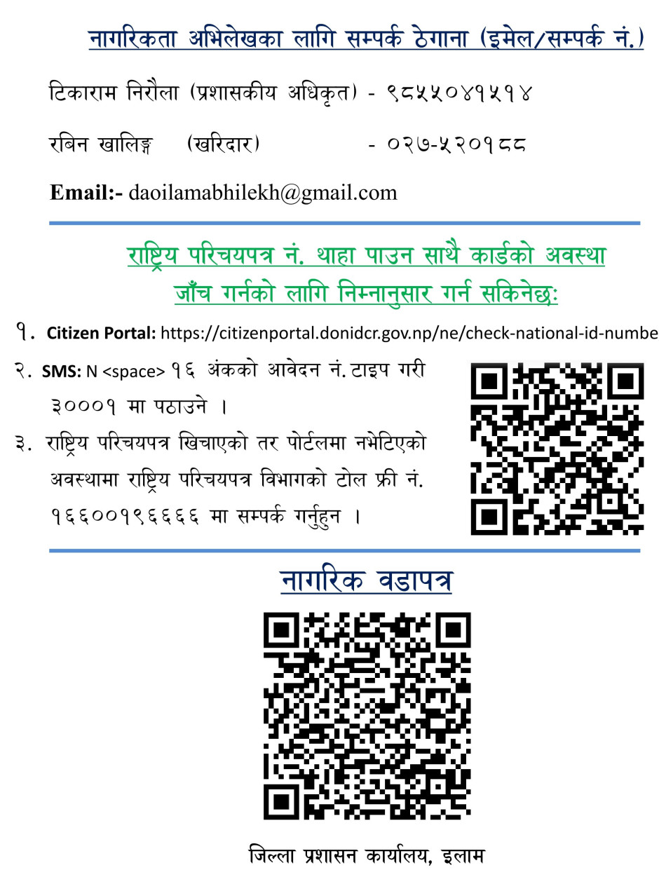 नागरिकताको अभिलेखका लागि सम्पर्क गर्नुपर्ने नं. र ईमेल