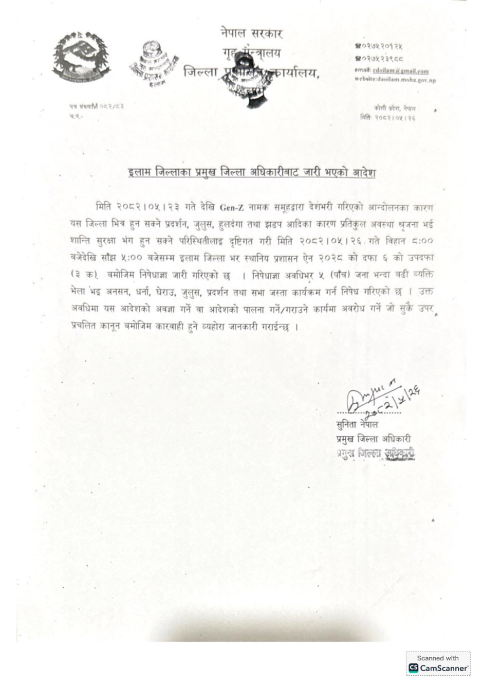 प्रमुख जिल्लाअधिकारीबाट जारी भएको निषेधाज्ञा ।।
