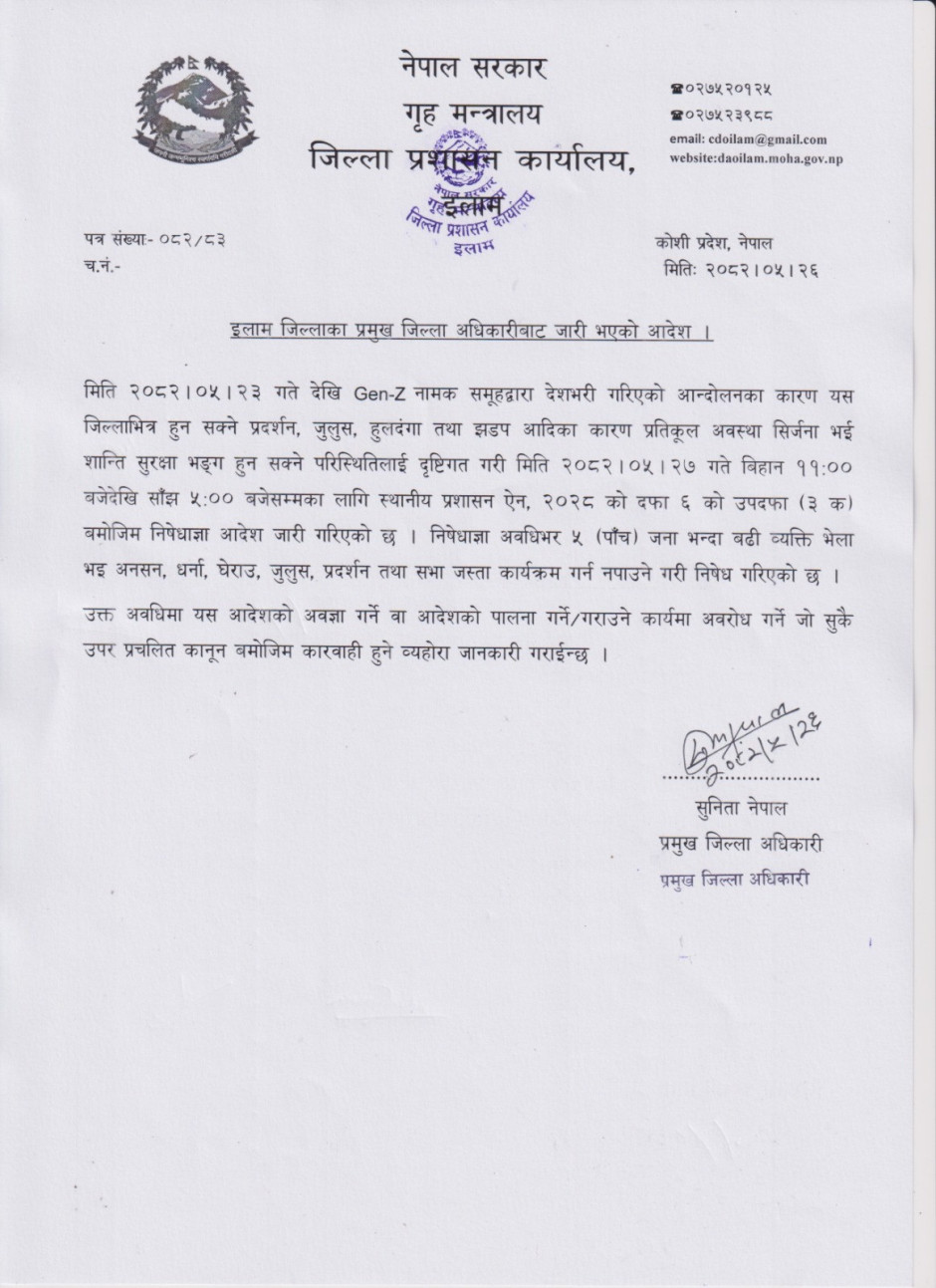 प्रमुख जिल्ला अधिकारीबाट जारी भएको निषेधाज्ञा