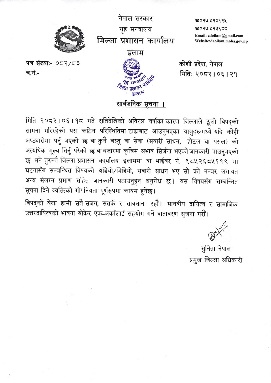 जरूरी सूचना । मूल्य वृद्धि, कालोबजारी सम्बन्धमा