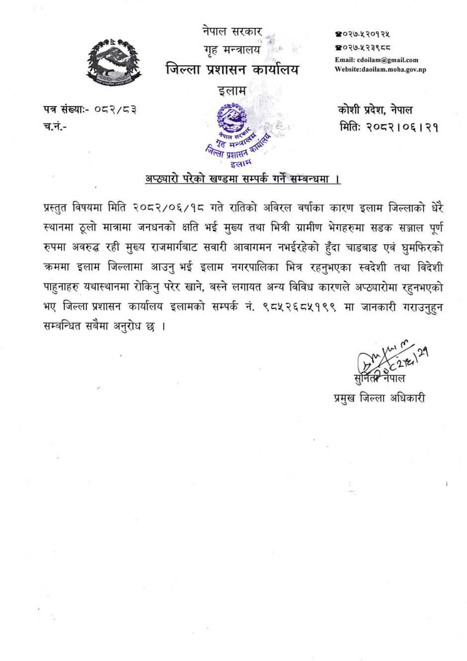 © सर्वाधिकार सुरक्षित जिल्ला प्रशासन कार्यालय, इलाम