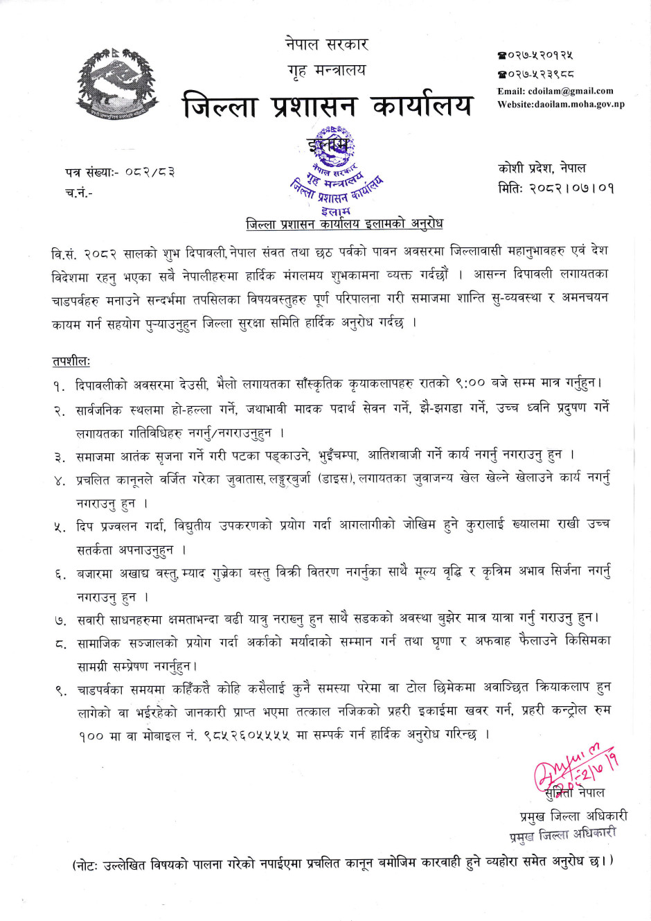 जिल्ला प्रशासन कार्यालय इलामको अनुरोध - तिहार २०८२