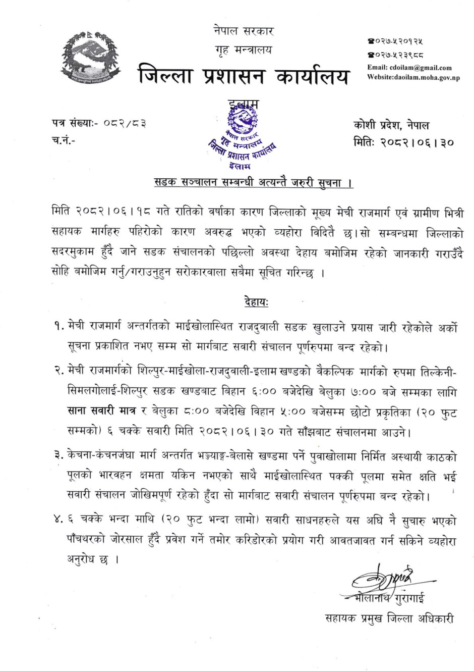© सर्वाधिकार सुरक्षित जिल्ला प्रशासन कार्यालय, इलाम
