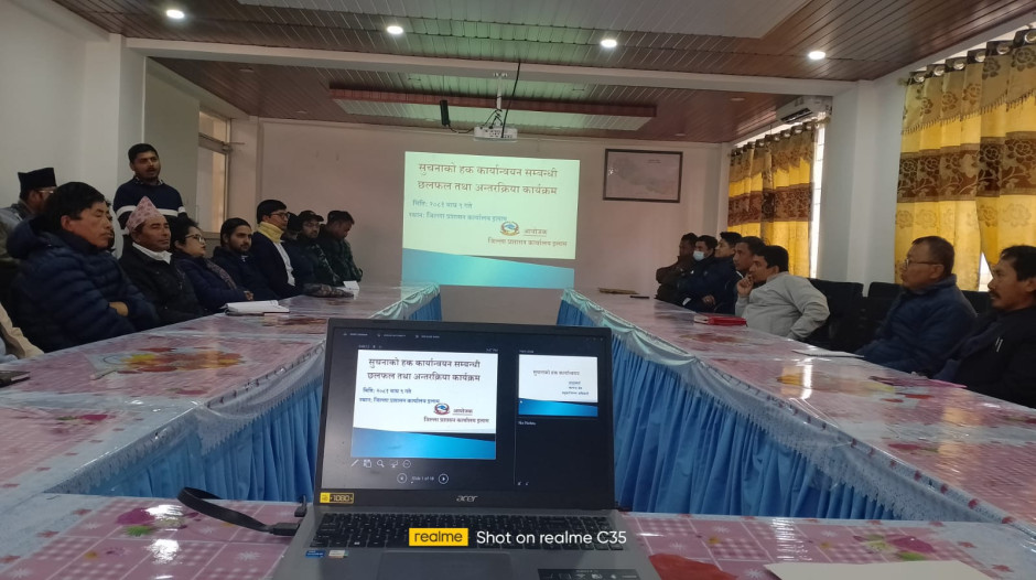 सूचनाको हक कार्यान्वयन सम्बन्धमा सूचना अधिकारी एवं सञ्चारकर्मीहरुसँगको अन्तरक्रिया कार्यक्रम । (मिति २०८१ माघ ०९)