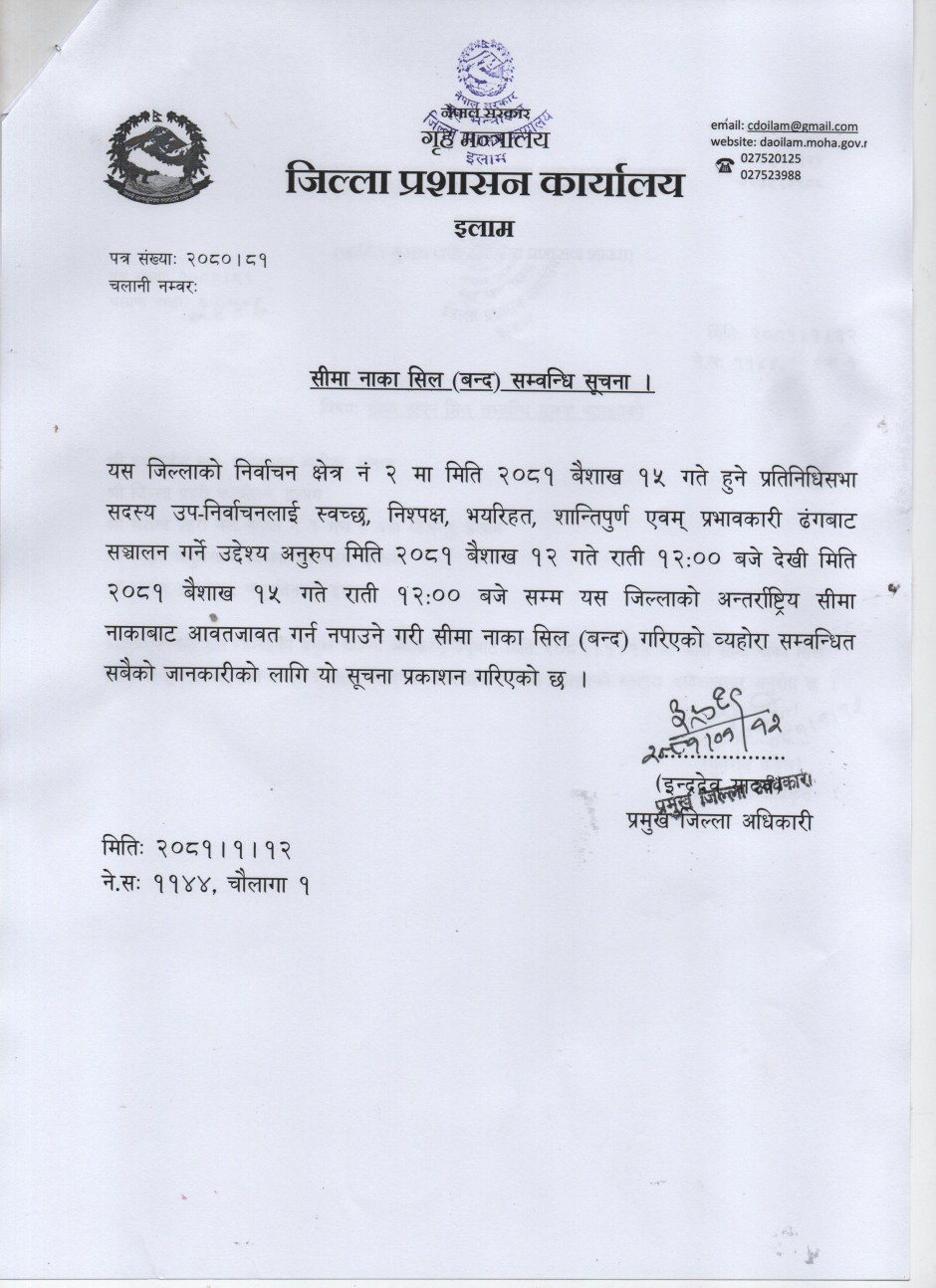 © सर्वाधिकार सुरक्षित जिल्ला प्रशासन कार्यालय, इलाम