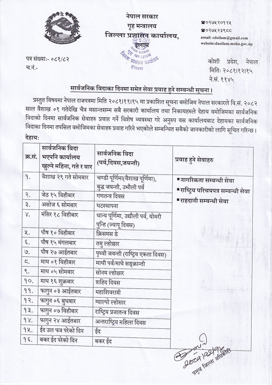 सार्वजनिक विदाका दिनमा समेत सेवा प्रवाह हुने सम्बन्धी सूचना ।।