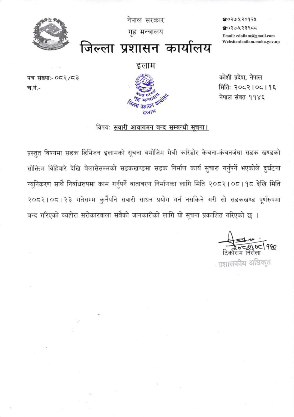 © सर्वाधिकार सुरक्षित जिल्ला प्रशासन कार्यालय, इलाम